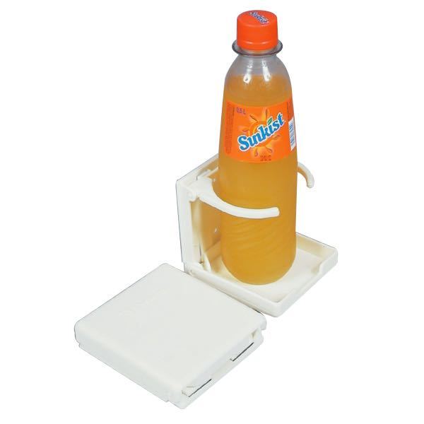 Kan vikas ihop så att den ligger plant mot väggen. Flaskhållaren monteras enkelt i båten eller bilen med 4 skruvar. \n\nSkruvar ingår ej.\n