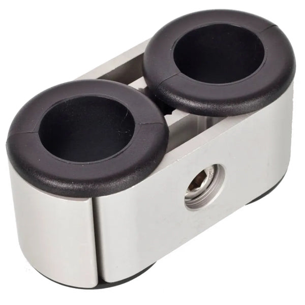 Dubbelbeslag för montering på mantåg och andra rör i tjocklekarna 25 mm.