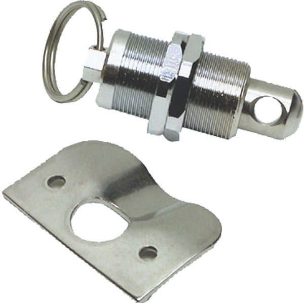 Rostfritt självstängande lås för t.ex. sittbrunnslucka eller annan lucka. Kan låsas med hänglås.