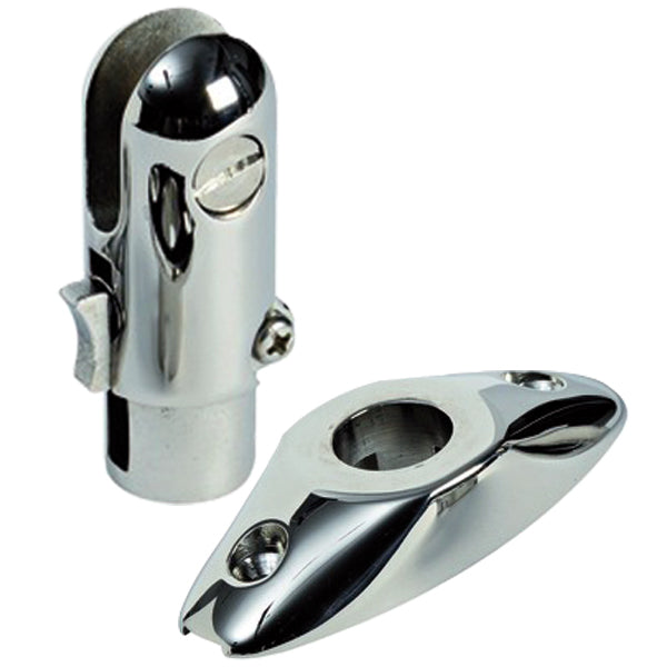 Avtagbara däckbeslag till kapell i högpolerat stål AISI 316 till 22mm rör. Passar med de redan vanliga kapellbeslagen på marknaden.