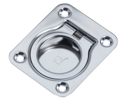 Durkbeslag med returfjäder, elektropolerat rostfritt stål. Stansade för bättre passform. Finns i 2 storlekar.