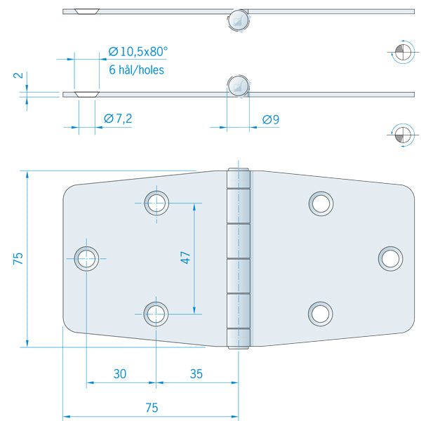 Gångjärn rostfritt, 150x75 mm