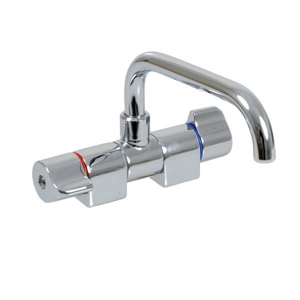Elegant kromad blandare med keramiska ventiler, fällbar svängbar pip.