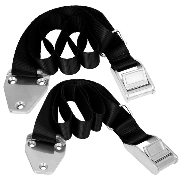 2 st. fästband med rostfritt spänne och durkbeslag för montering av badstege på gummibåt.