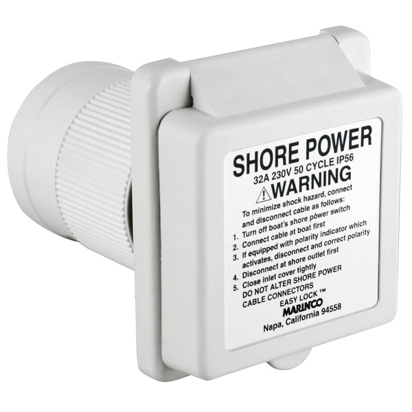 Marinco landströmsintag i glasfiber/polyester ”Easy Lock System” som är vattentätt.
