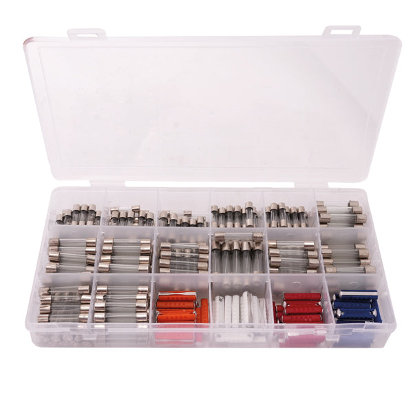 270 säkringar av glas och porslinssäkringar i en plastlåda från 1 till 30 Amp.\n\nGlassäkringar:\n6x30mm 1A 15 st.\n 2A 15 st.\n 3A 15 st.\n 5A 15 st.\n 8A 15 st.\n 10A 15 st.\n 15A 15 st.\n 20A 15 st.\n 30A 15 st.\n\n5x20mm 1A 15 st.\n 5A 15 st.\n 10A 15 st.\n 15A 15 st.\n 20A 15 st.\n\nPorslinssäkringar:\n5A- Gul 15 st.\n8A- Vit 15 st.\n16A-Röd 15 st.\n25A-Blå 15 st.
