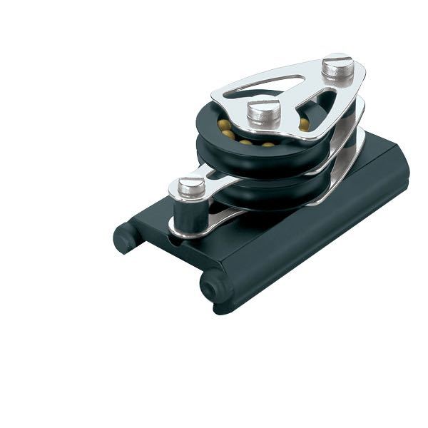 Ändkontroll med dubbla block och hundsvott för 30 mm X-skena. Skenan monteras med 8 mm försänkta skruvar med 100 mm mellanrum.\n\n· Lågprofiltravare av aluminiumskena \n· Torlon® -kullager och acetalglidstavar