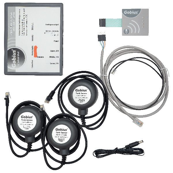 Lysdioder i olika färger visar fyra nivåer; tom (röd), 1/4-, 1/2- och 3/4-full. 3 sensorer monterade (limmade) med en 3M tejp på utsidan av din tank.\n\nMycket lätt att eftermontera på nya och äldre tankar. Ingen håltagning eller demontering av tanken behövs. Mäter från utsidan, aldrig risk för läckage. \n\nKomplett system, allt ingår, panel, givare och alla kablar. Klarar spänning på 12-24 Volt. Kan även kopplas till analoga instrument, som KUS, VDO, WEMA, Faria m fl. Stödjer 0-190 Ohm, 240-33 Ohm, 4-20 mA och 0-5 Volt. Version 5.0.\n\nFör alla dessa tankmaterial:\nRostfritt stål max 3 mm\nStål max 3 mm\nAluminium max 5 mm\nPolyeten max 12 mm\nGlasfiber max 8 mm