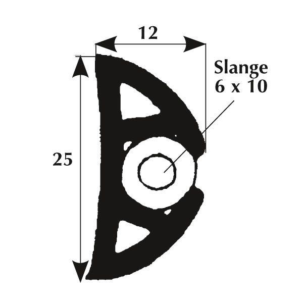 Svart PVC-fenderlist i storlek 25x12 mm. Kan användas med inläggsslang 6x10 mm, som finns i svart ogc vit.