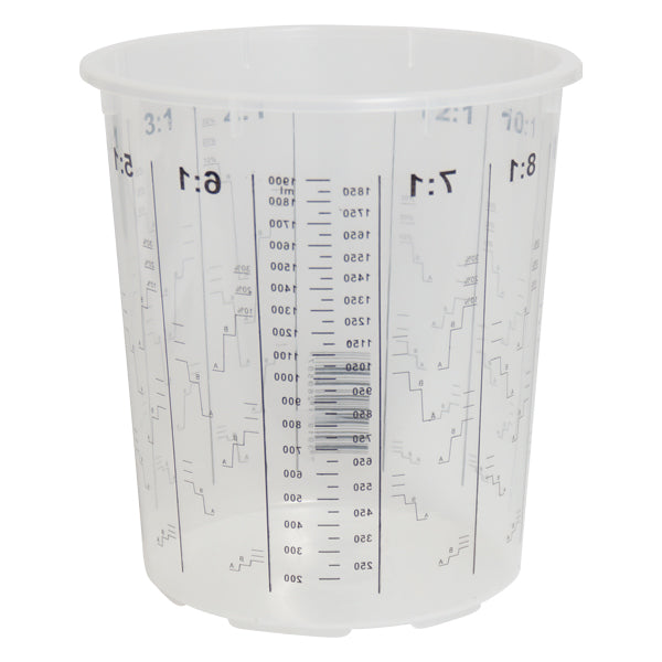 Blandningsbägare för korrekt uppmätning av 2-komponentsfärg, förtunning, epoxi och polyester etc. Motståndskraftig mot lösningsmedel. OBS: I 2,2 liters bägare passar en 100 mm rulle. (ingår ej).\n\nOBS. Kan ev köpas styckvis i butiken.